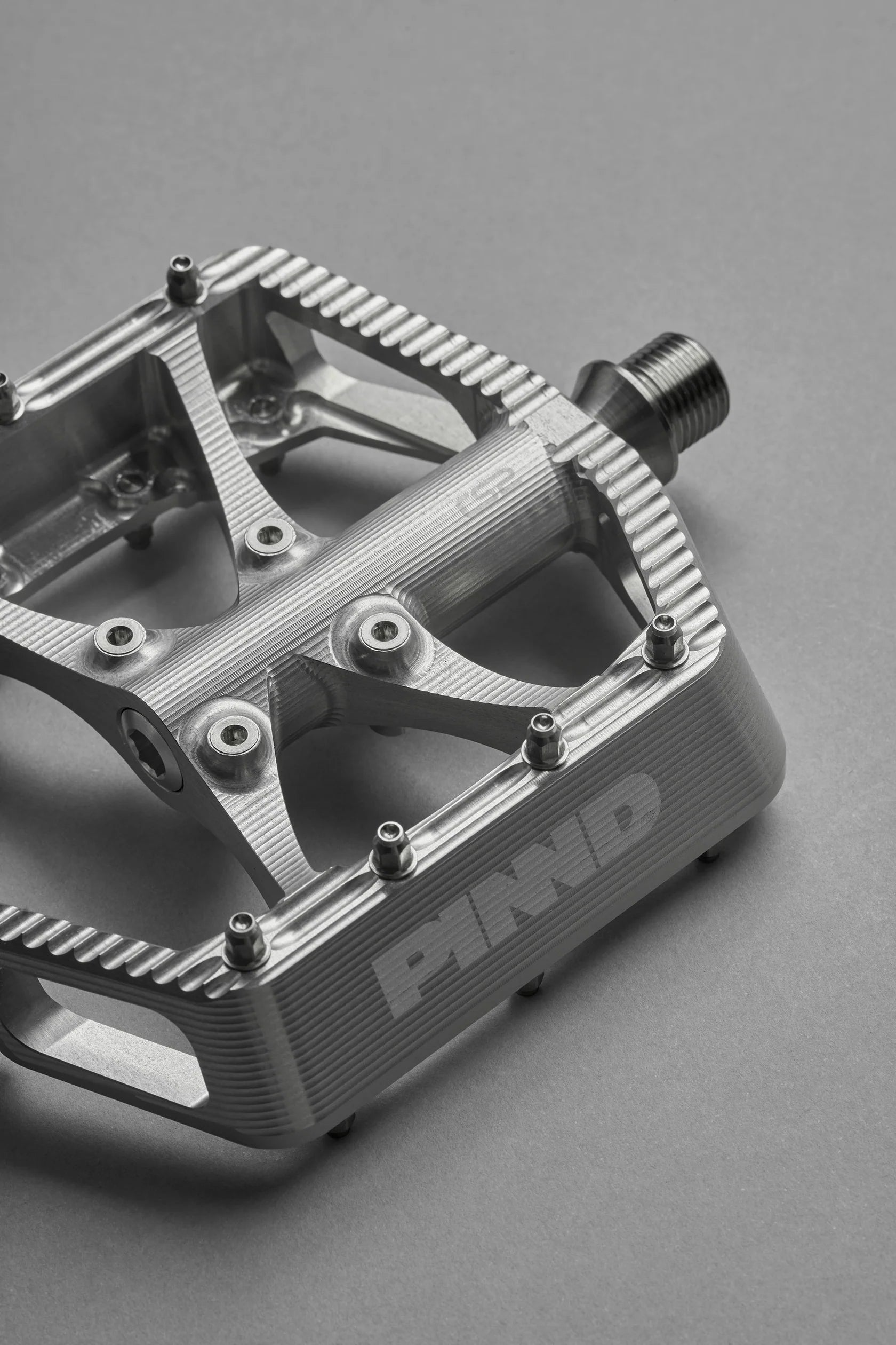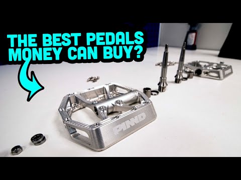 High-grip CNC machined flat pedals with a large concave platform for maximum control and stability.